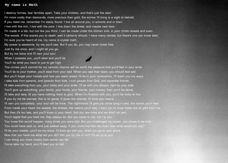 The bird gives the impression that Meth will set you free. You could replace it with a cemetery .